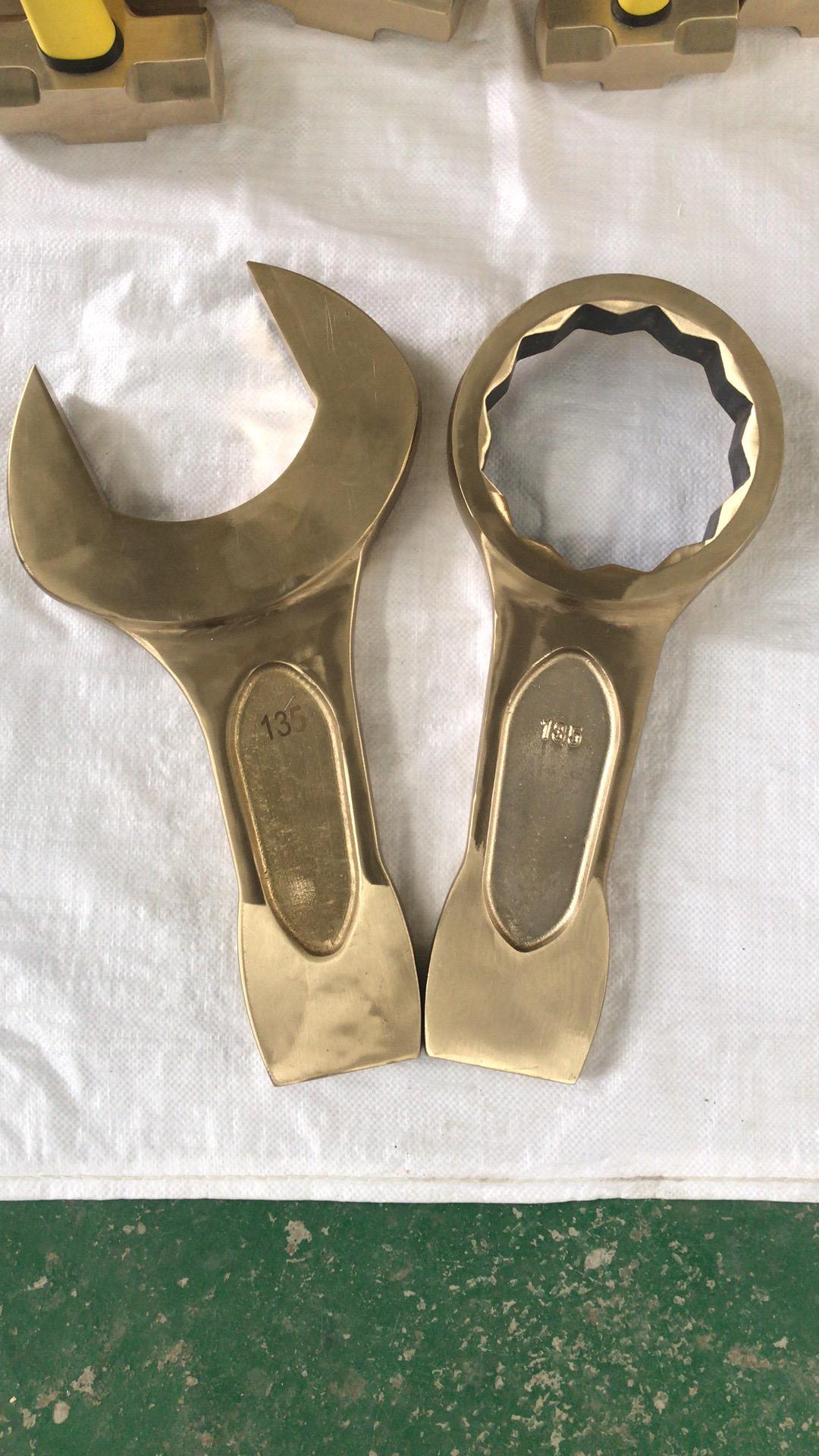 防爆敲擊呆扳手與鉗工錘配合使用,敲擊拆卸和緊固尺寸較大的六角頭螺栓和螺母。它的材質(zhì)分為鈹青銅合金和鋁青銅合金。