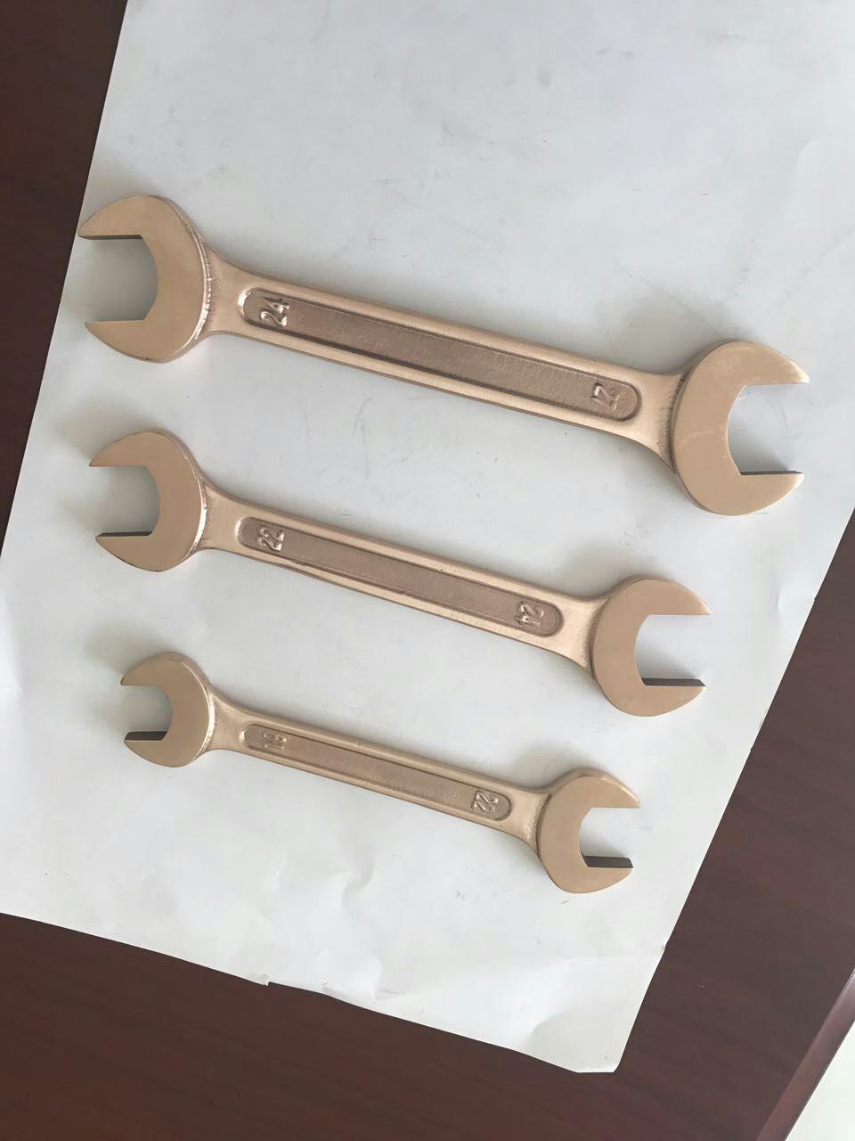 成套雙頭呆扳手通過摩擦壓力機模鍛而成。用于緊固或拆卸六角頭或方頭螺栓(螺母)。成套雙頭呆扳手的防爆性能達到 高IIC級。適用濃度21%的氫氣環(huán)境中作業(yè)不產(chǎn)生火花、不引爆氣體。